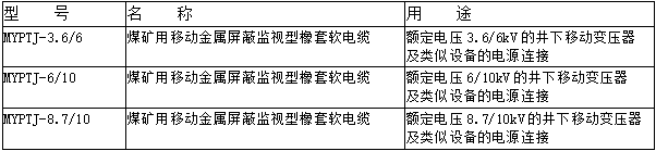 型號(hào)說明:M:煤礦用; Y:采煤設(shè)備(移動(dòng))用; PT: 金屬屏蔽; J:監(jiān)視或輔助線芯;
