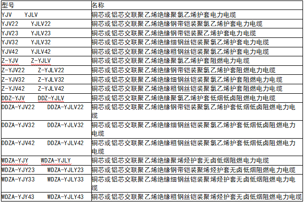 型號:YJV YJLV YJV22 YJLV22 YJV32 YJLV32 YJV42 YJLV42