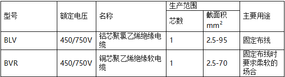 1)電纜的額定電壓uo/u為450/450V和300/500V